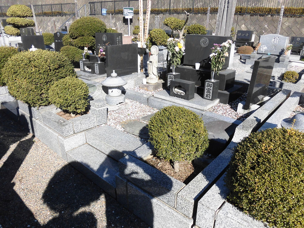 植木を撤去して全面敷石を張ることにより維持管理が楽になりお墓が明るく綺麗になりました。