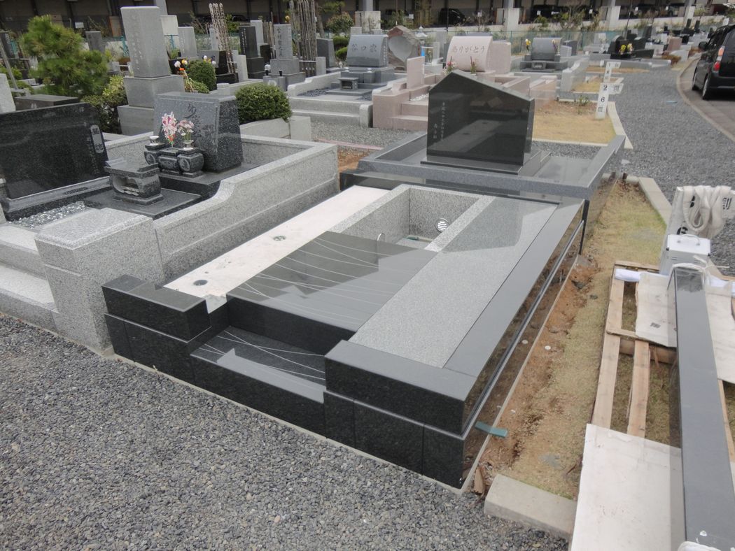 所 在:東京都八王子市 スタイル:その他デザイン墓石 新設工事 参考価格:200万円 寸 法:間口1900mm × 奥行2400mm 墓地面積:4.56平方メートル 石 塔:河北山崎 外 柵:アーバングレー 鋳物のフェンスを付けました。